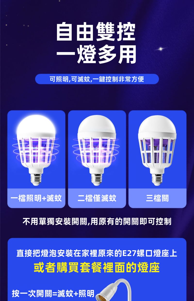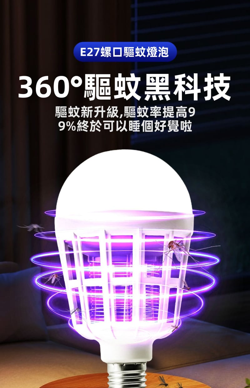 4分鐘前限時搶購 LED照明滅蚊燈E27螺口一擰即裝,UV紫光誘蚊,節能LED無頻閃,護眼超安全,居家戶外兩相宜 - 3入組-【均價399】NT$1199