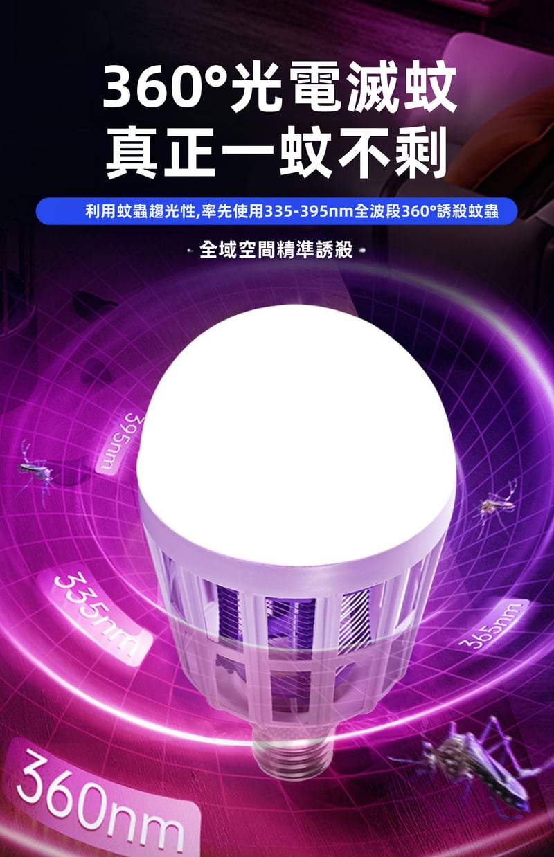 2分鐘前限時搶購 LED照明滅蚊燈E27螺口一擰即裝,UV紫光誘蚊,節能LED無頻閃,護眼超安全,居家戶外兩相宜 - 5入組-[均價299】NT$1499