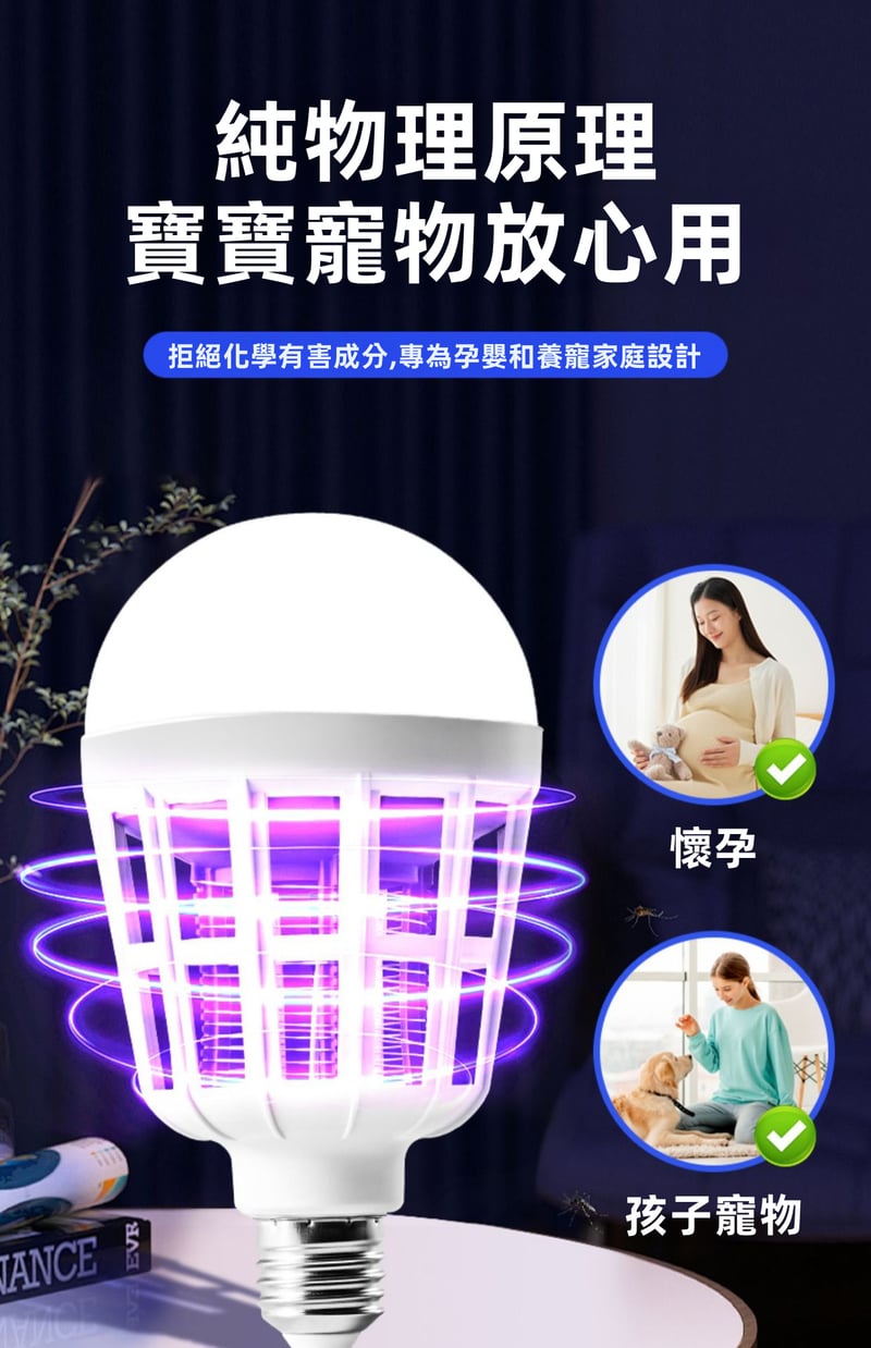 2分鐘前限時搶購 LED照明滅蚊燈E27螺口一擰即裝,UV紫光誘蚊,節能LED無頻閃,護眼超安全,居家戶外兩相宜 - 2入組-【買一送一】NT$999