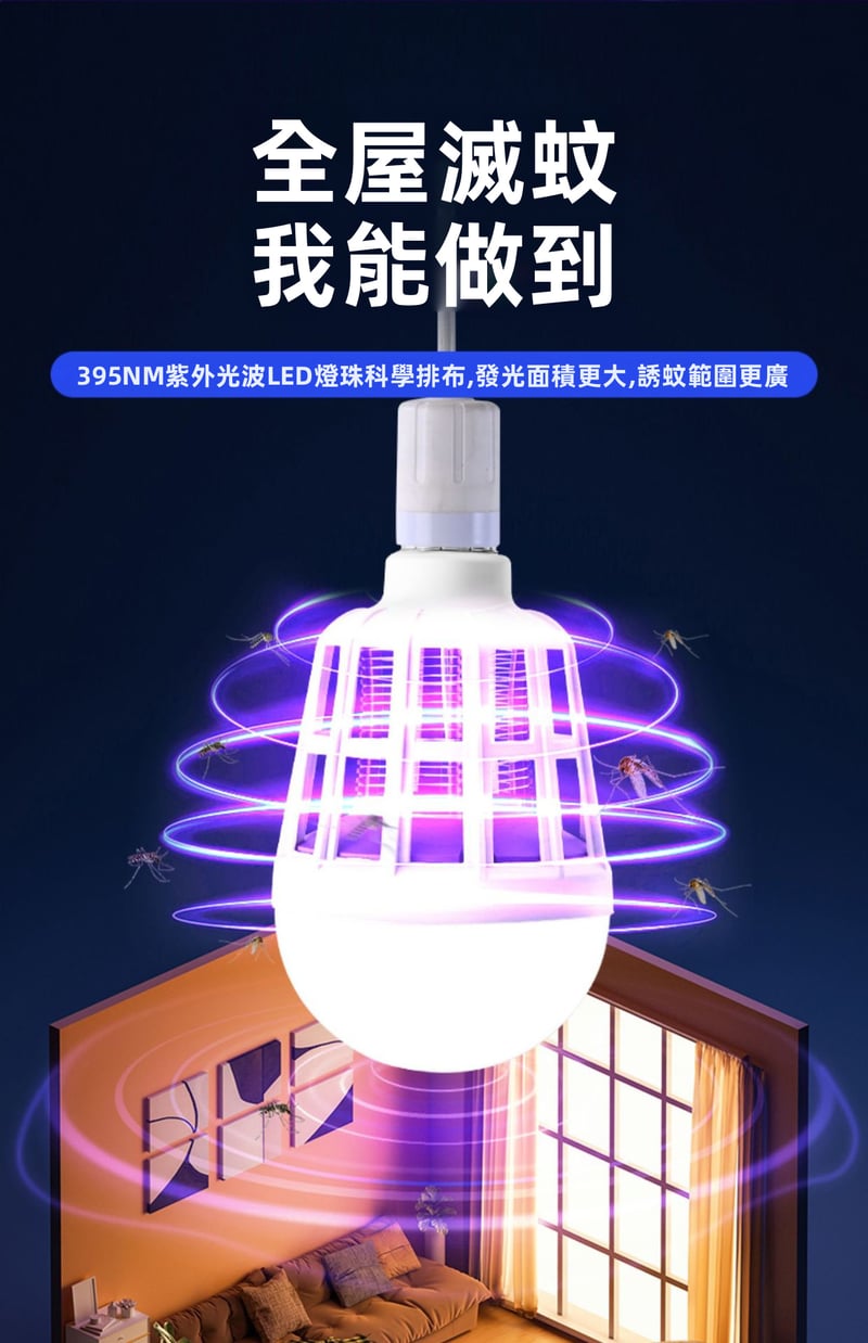 半小時前限時搶購 LED照明滅蚊燈E27螺口一擰即裝,UV紫光誘蚊,節能LED無頻閃,護眼超安全,居家戶外兩相宜 - 3入組-【均價399】NT$1199